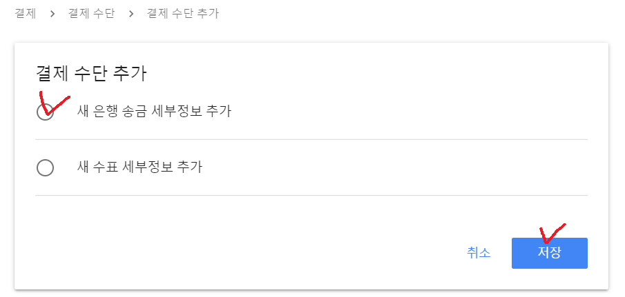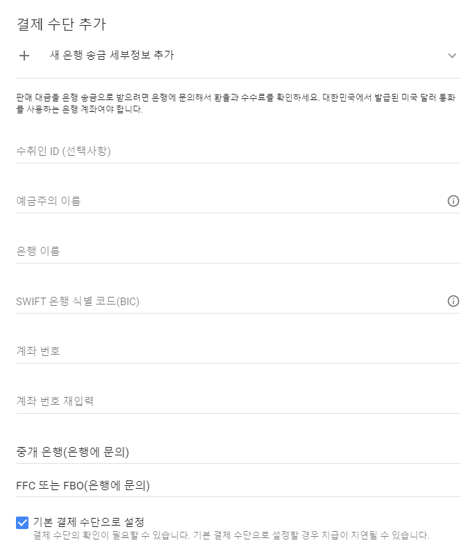 4. 새 은행 송금 세부 정보 추가를 클릭한 후 저장한다.