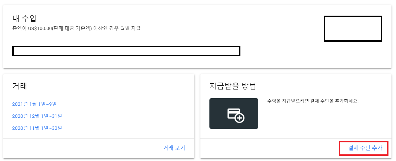 나중에 결제 수단을 수정하고 싶으시거나 추가하고 싶으실 경우에도 쉽게 애드센스 홈페이지에서 가능합니다.