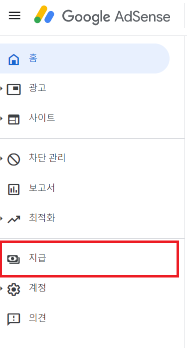 2. 구글 애드센스 카테고리에서 지급을 클릭한다.