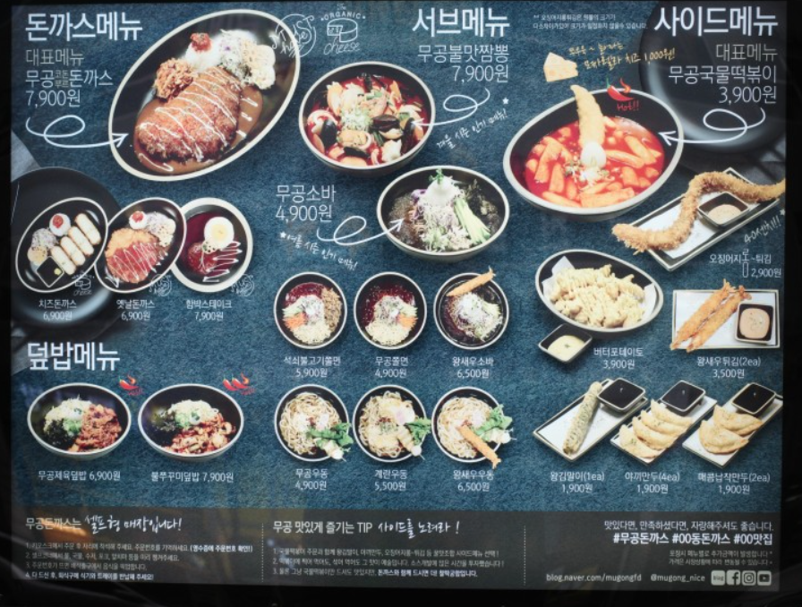 무공돈까스는 돈까스뿐만 아니라 덮밥류, 면류, 튀김, 떡볶이등 다양한 메뉴를 판매하고 있었습니다.