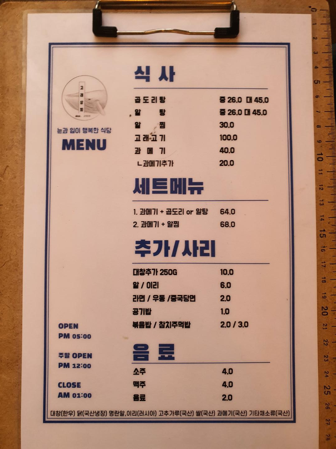 물론 고래고기도 있었지만 비쌌어요 ㅠㅠ
