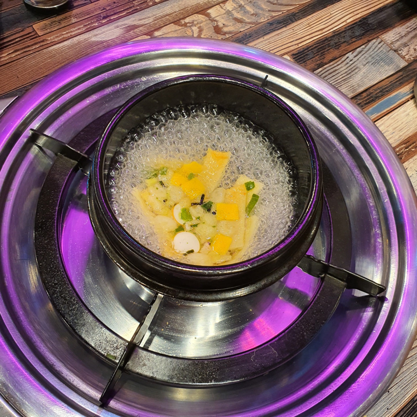 음식을 주문하면 주문한 음식이 조리될 때까지 손님들의 입이 심심하지 않게 어묵탕을 끓여주신다.