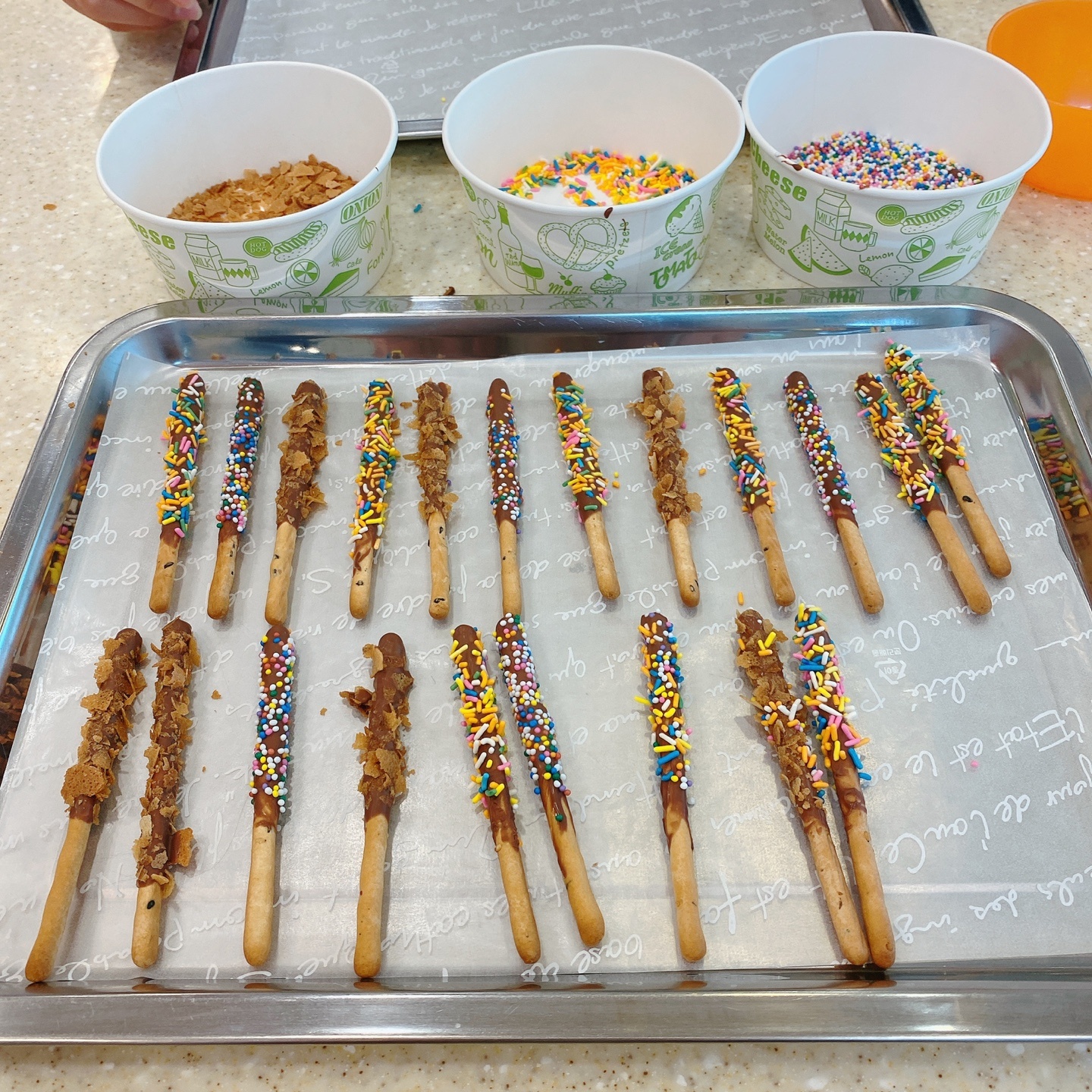 저희가 방문했을 당시에는 초코송이, 초콜릿 몰드, 빼빼로 만들기 체험이 있었는데 빼빼로가 셋 중에는 난이도가 있는 편이고 재밌게 만들 수 있어서 선택했어요