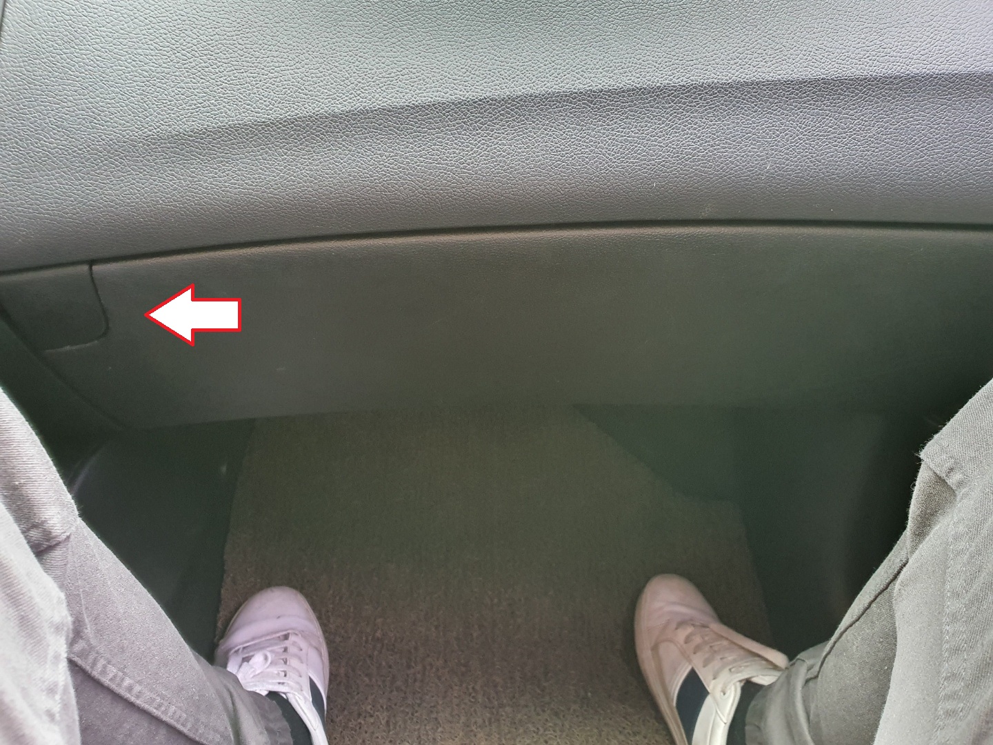 먼저 조수석 앞에 위치한 글로브 박스를 꾹 눌러 오픈합니다.
