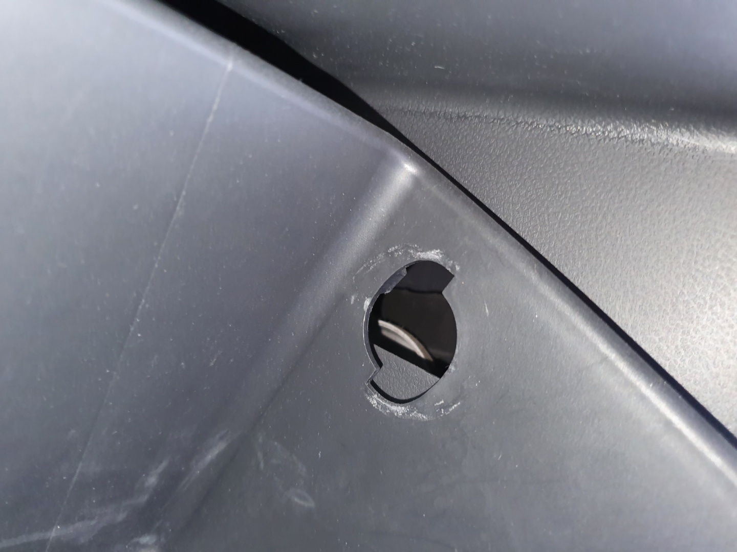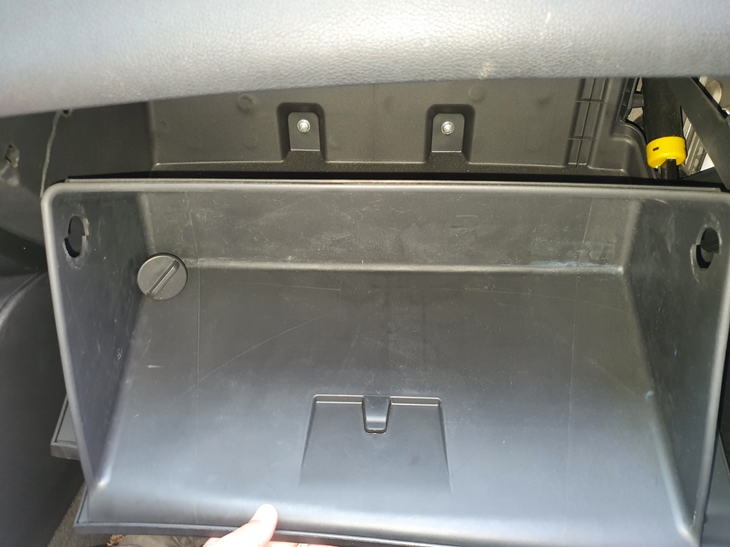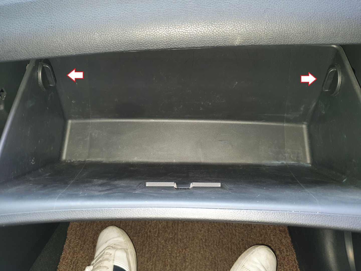 짐을 다 정리한 후 안쪽을 살펴보시면 플라스틱 볼트로 글로브 박스가 고정되어 있다는 것을 확인하실 수 있습니다.