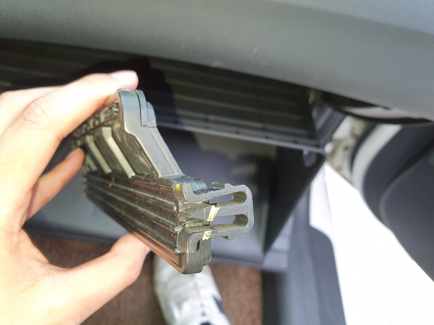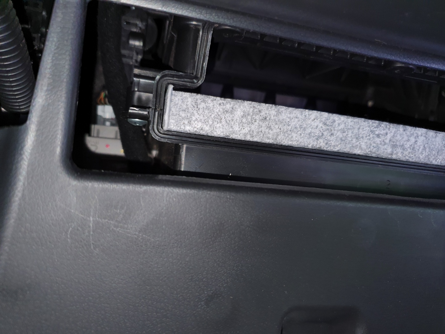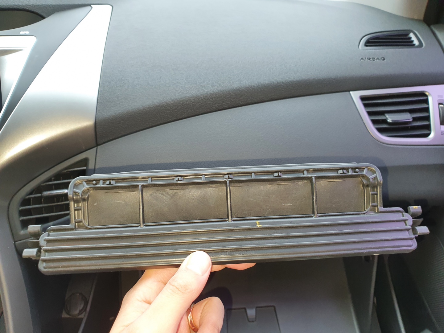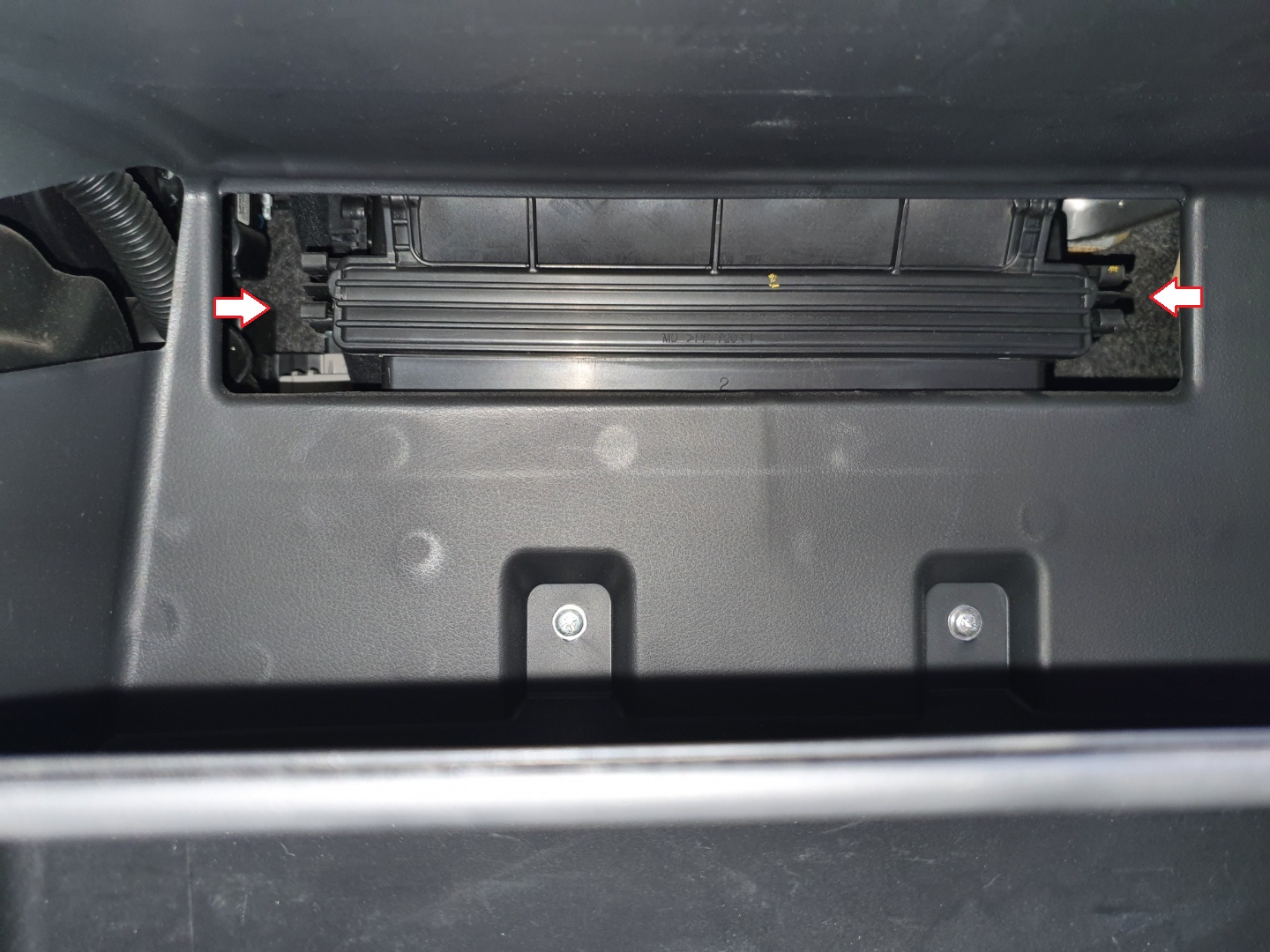 볼트를 분리하면 글로브 박스가 완전 분리가 되면서 안쪽에 필터 커버가 노출이 됩니다.