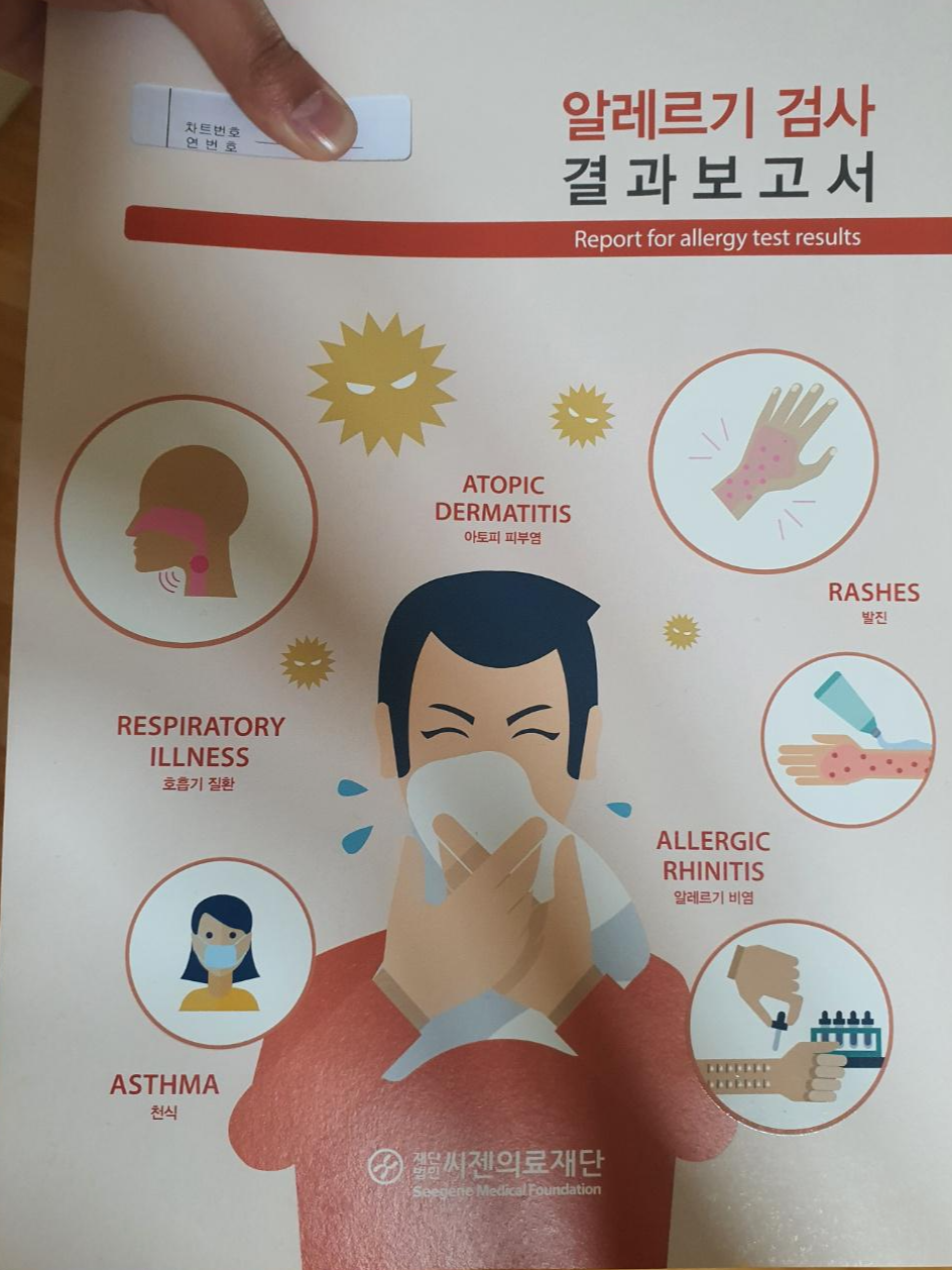 학창시절 때는 아무거나 다 잘 먹고 다녔던 저인데 어느 순간부터 가끔 음식을 먹으면 재채기를 하거나 피부 가려움 등의 현상이 나타나는 것 같아 궁금증에 연차를 내고 알레르기 검사를 해봐야겠다고 생각했답니다.
