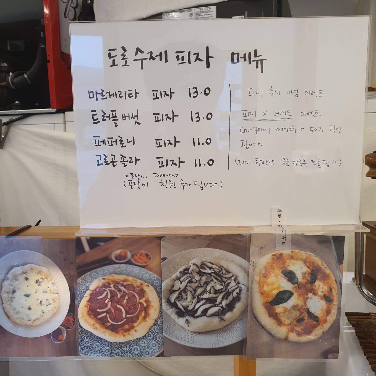 음료 의외에도 피자, 빵도 판매를 하며 모든 메뉴가 사장님의 수제로 만든 메뉴들입니다.