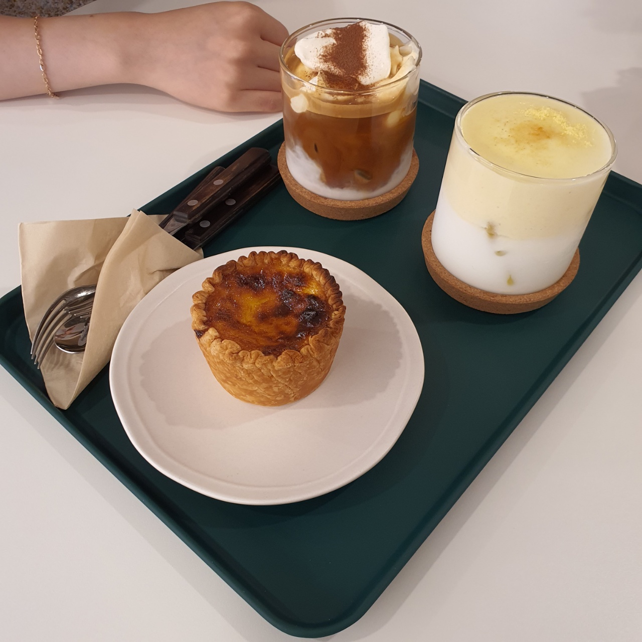 간단하게 에그타르트와 콘크림라떼, ㅋ.ㅋ커피를 주문해보았어요.