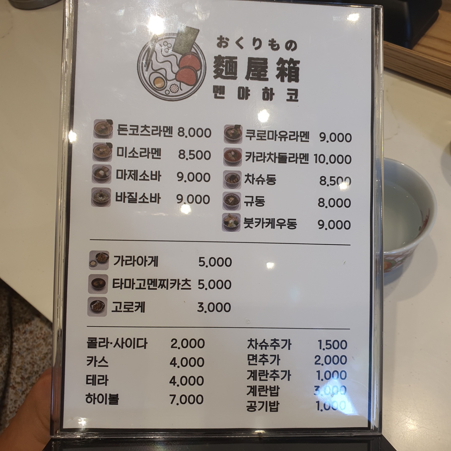 메인 메뉴는 돈코츠 라면이며 우동과 소바도 함께 판매하고 있네요.